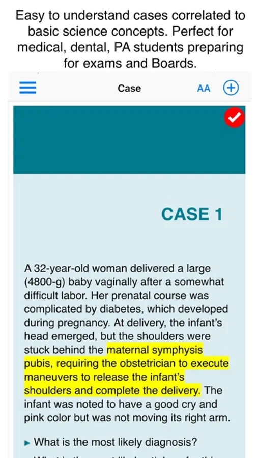 This free application includes 1 sample case study from the 58 that are available through an in-app purchase of $29.99 of Case Files Anatomy. The 58 high-yield cases will help you excel on the clerkship and improve your shelf-exam score.