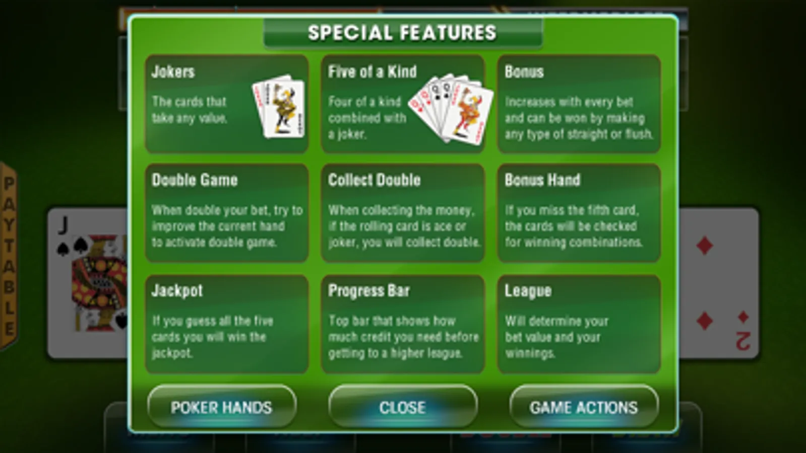 Jokers Poker is a beautifully developed video poker game, a variation of the Jacks or Better, that combines the classical gameplay rules with a series of new creative special features like Jackpot, Bonus or Double Game that will keep your excitement and engagement throughout the game.