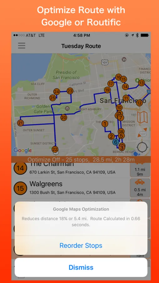 Top rated route planner for routes with up to 500 stops per route. View stops on a map or launch your favorite navigation application. In-app purchase enables route optimization and route display.