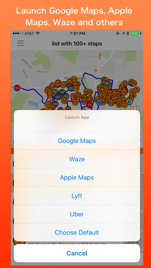 Quickly create lists of stops, and launch your favorite navigation program. Sort by distance from current location, manually sort, or optimize stop sort order with one of the premium versions. Displays the estimated travel time and distance to each stop. Share a list with others through Google Drive - any changes to the list will be seen by all the users. Great for delivery routes and delivery drivers. Barcode reader feature scans FedEx, UPS Mail Innovations, and Royal Mail Mailmark barcodes.