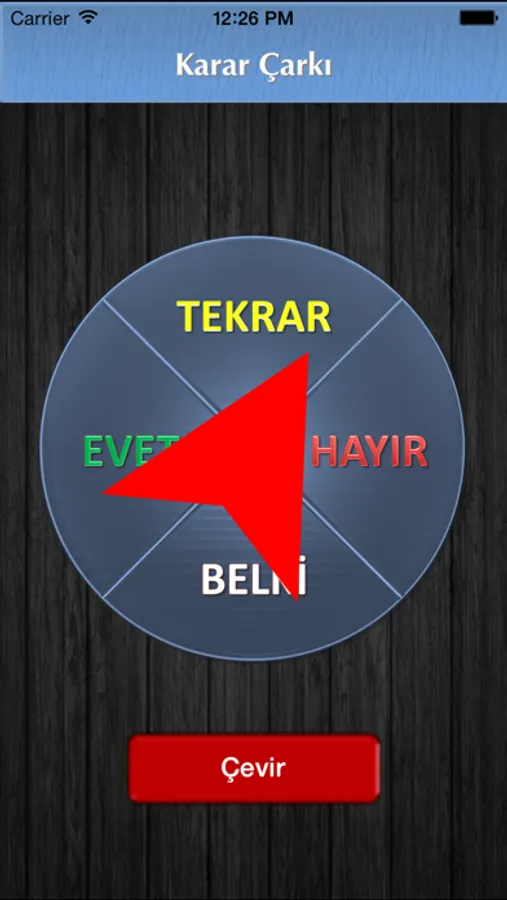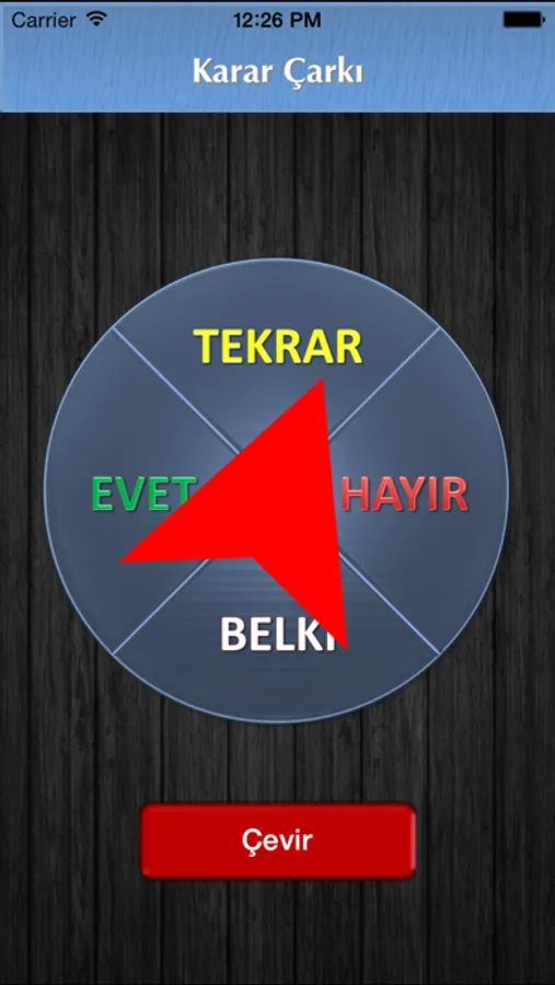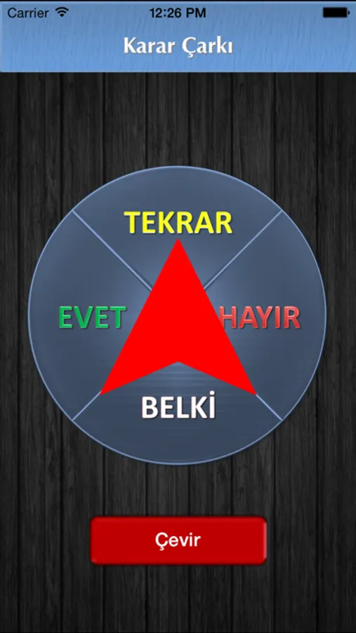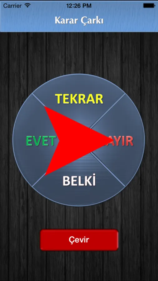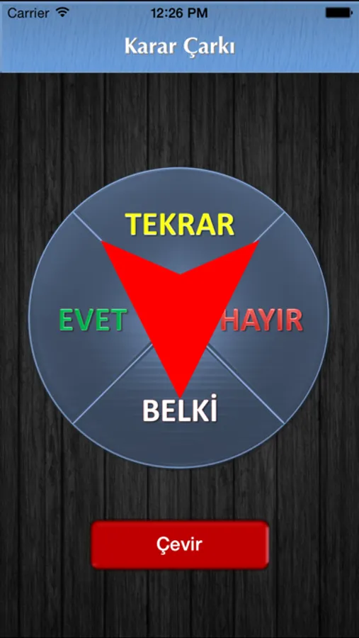 "Karar Çarkı" karar vermeniz gereken durumlarda size yardımcı olacaktır. Size 4 farklı seçenek sunarak karar aşamasında yol gösterecektir. Kararlarınızı eğlenceli hale getirecektir.