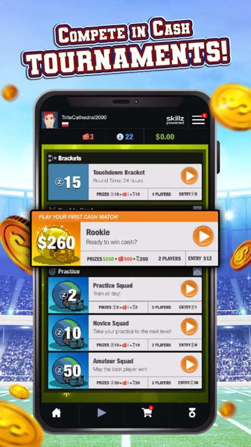Welcome to Touchdown Hero, the Skillz-powered football game where you can compete with friends, ace the competition, and win big cash prizes. (where available)!