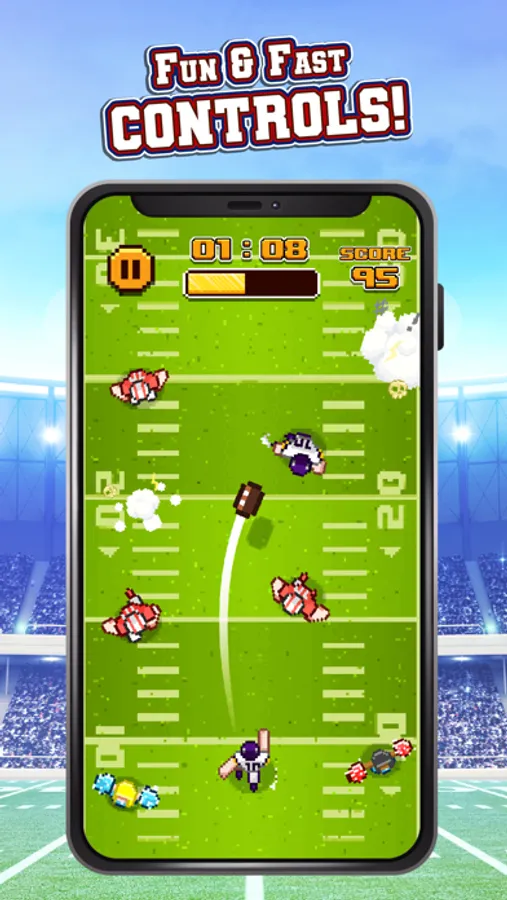 THROW LIKE A PRO! Choose the right scheme and swiftly rush down the field. Use fakes, pushes, and spins to avoid being tackled by aggressive defenders.
