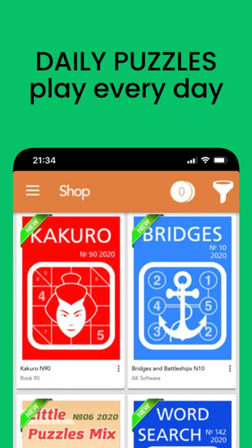 Crosswords, Sudoku, Picross, Nonograms, Kakuro, Word Search, Link-a-pix, Puzzle Page, Logic Puzzles, Codewords and many many other puzzles.