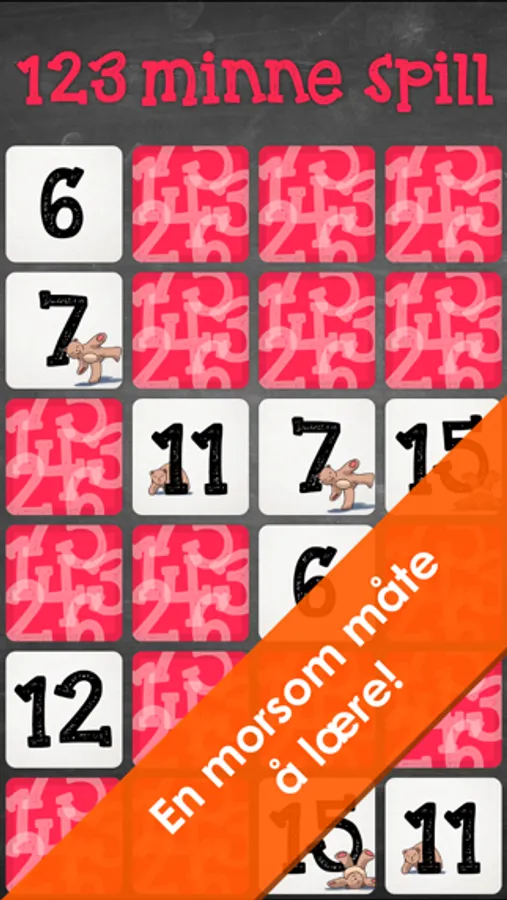 "123 minne spill" er en del av en serie av læringsspill for barn 3-10 år. Spillene gjør det morsomt å lære alfabetet, tall, ord og mer.