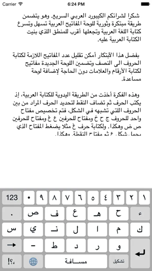 شكرا لشرائكم الكيبورد العربي السريع. وهو يتضمن طريقة مبتكرة وثورية للوحة المفاتيح العربية تسهل وتسرع كتابة اللغة العربية وتجعلها أقرب للمنطق اللذي بنيت الكتابة العربية عليه.