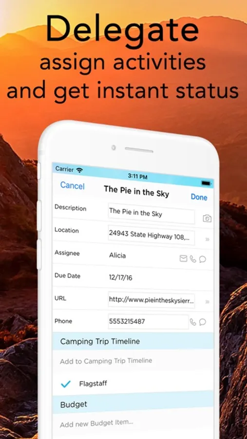 Pro Camping Planner can be used from your iPhone and iPad and the data can be shared between multiple users in real time making it the ideal collaboration tool. Being efficient at collaborating will reduce the redundancy and save you money and weight, 2 very precious commodity in Camping World!