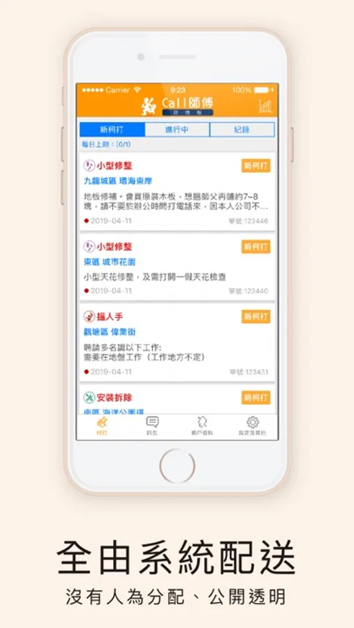 客戶落單、師傅接單、聯繫開工,全程電腦處理柯打不經人為篩選。