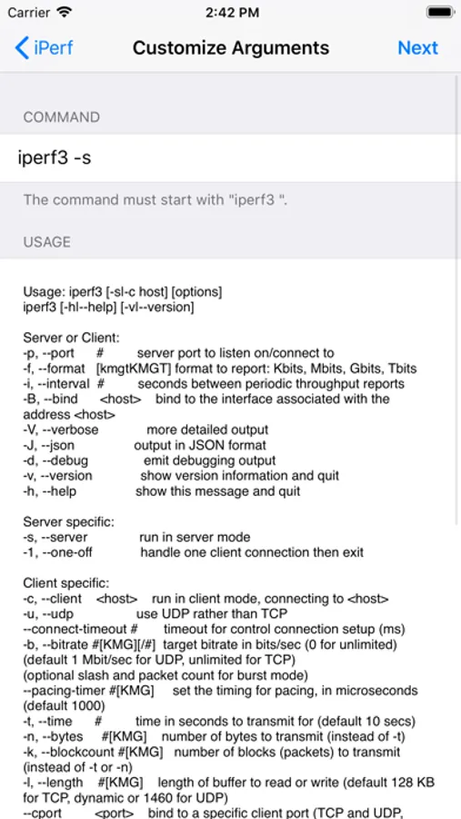 - Customize iperf3 arguments