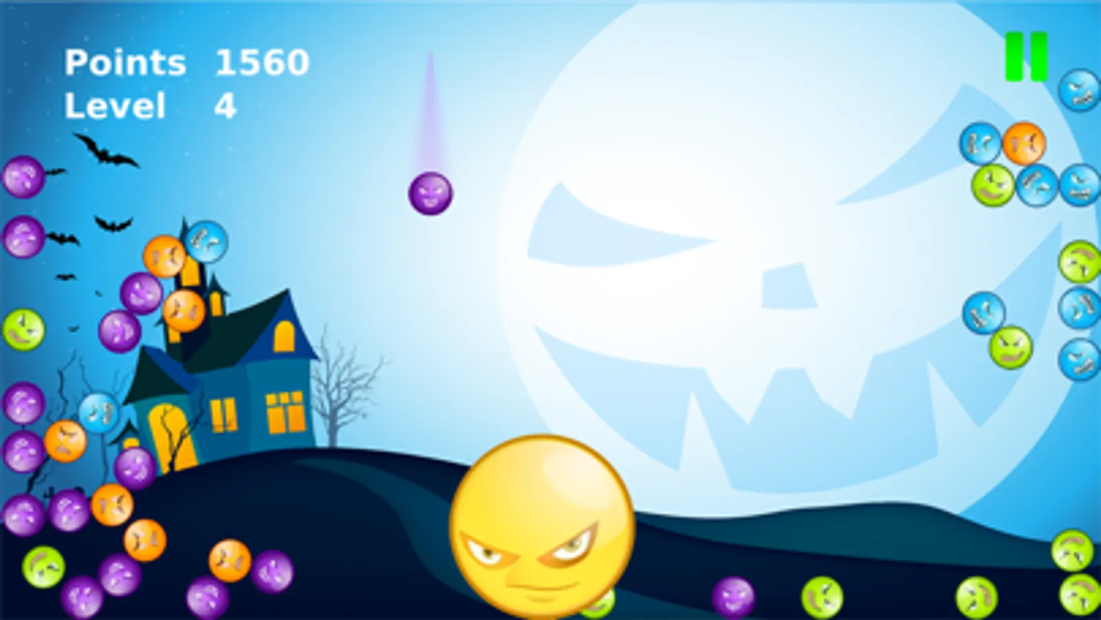 Monsters, ghosts and demons are running wild in the night and creating scary sounds on Halloween eve. The moon has come down to defend the planet from evil spirits as the Halloween ghost has taken its place in the sky and is attacking with all his little monsters. In these battle games your mission is to save the planet by killing monsters; match 3 of the same colors or use the Halloween pumpkin bombs to destroy the scary monsters and win points in these matching games with monsters.