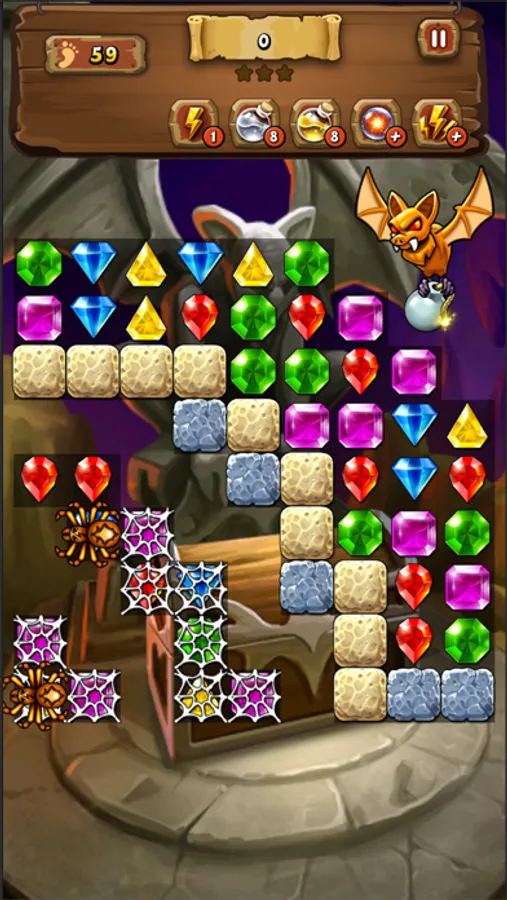 - Jolly Crunch – match jewels to smash the rocks and douse the flames to set the treasure free