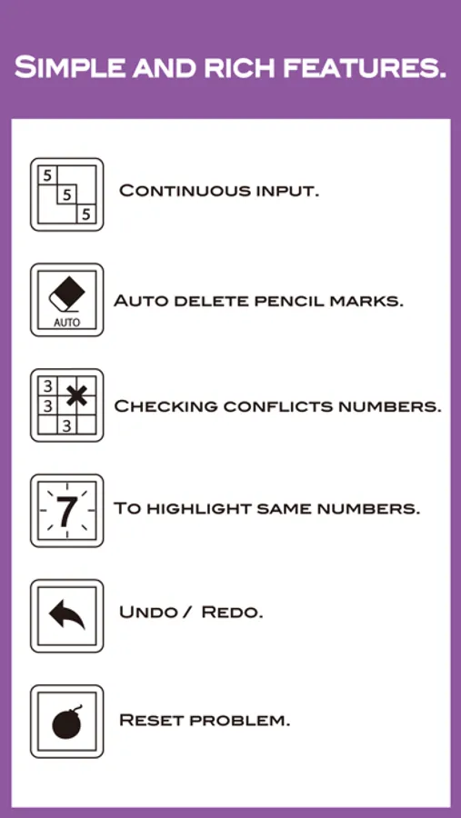 You can play extensive variety (variant) Number Place problems! All problems are high quality.