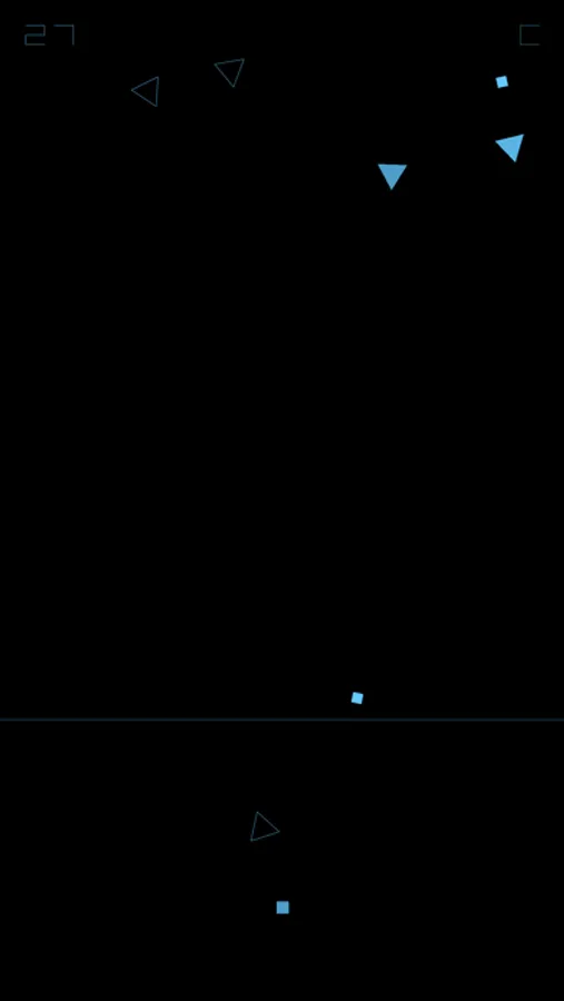 When a triangle hits a square, it toggles between outlined and filled shape. A round is complete when all triangles are filled. The game is over when all triangles are outlined.