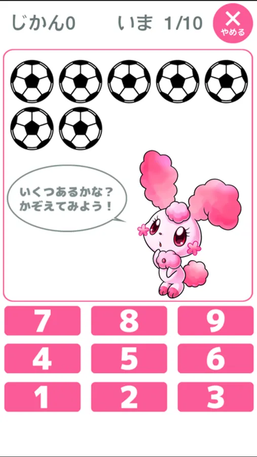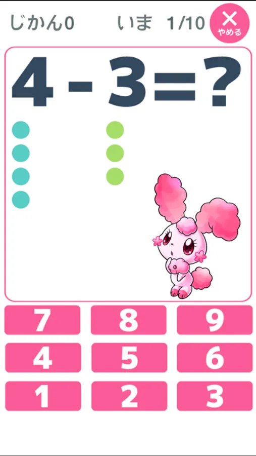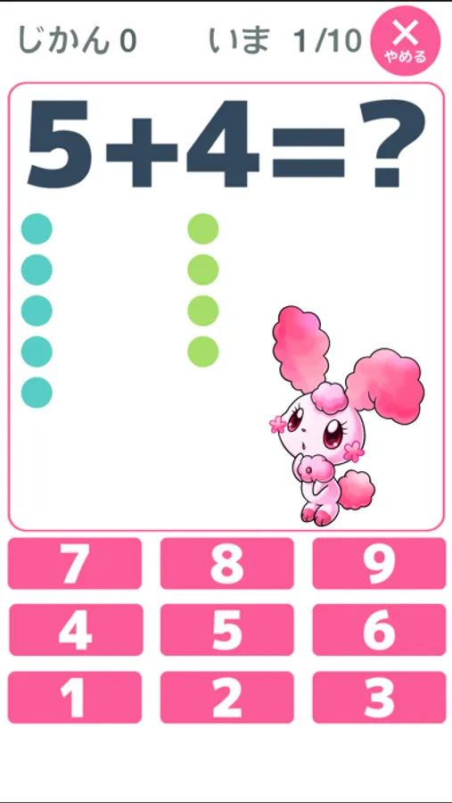 ゲーム感覚で、数える・足す・引くの3つの問題が学べます。