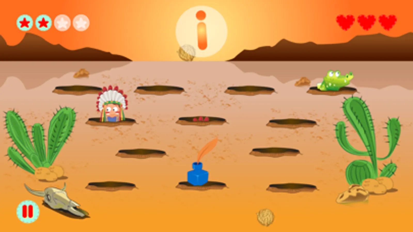 Wack-a-mole: Golpea las figuras correctas y ten cuidado con los cactus.