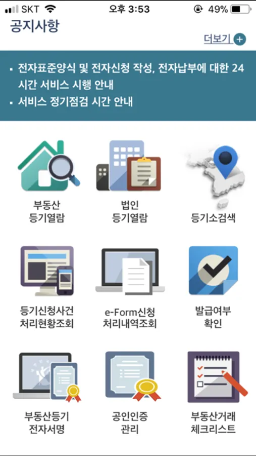 대법원 인터넷등기소 홈페이지에서 제공하고 있는 주요 서비스를 스마트폰에서도 편리하게 이용할 수 있습니다.