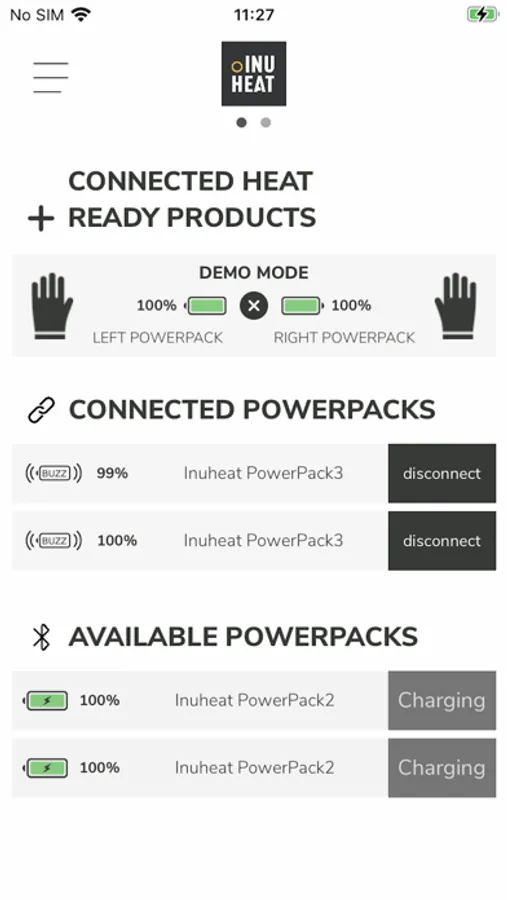 • Branded Interface – One app, easy to use, for all your Inuheat compatible heated clothes