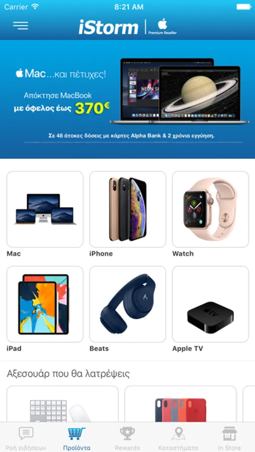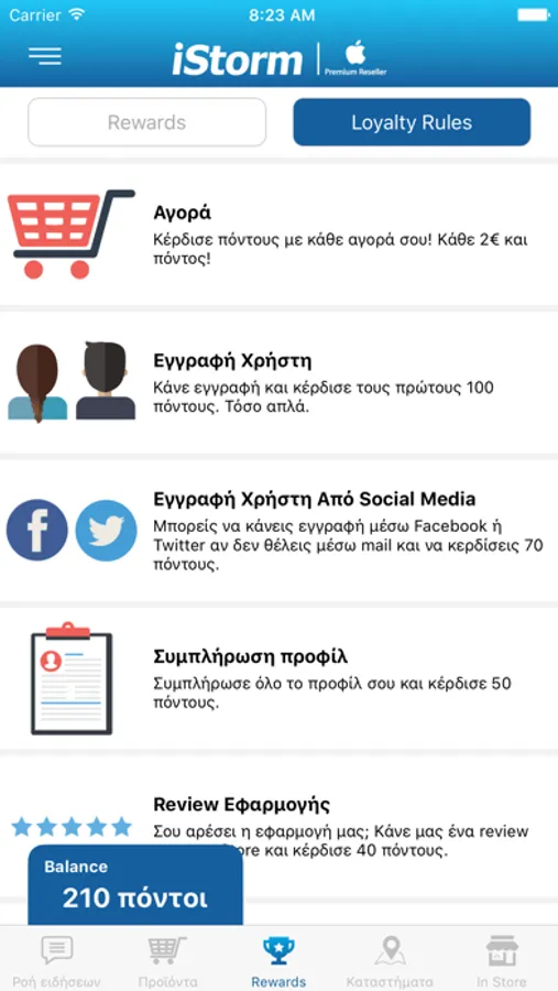 Ταυτόχρονα, το iStorm App αποτελεί ένα μοναδικό Πρόγραμμα Επιβράβευσης που σου αποφέρει όφελος από κάθε αγορά και όχι μόνο! Μπορείς να συλλέξεις πόντους σε κάθε επίσκεψή σου σε ένα κατάστημα iStorm, παρακολουθώντας σεμινάρια και φυσικά με τις αγορές σου.
