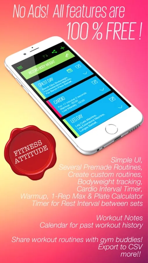 • All features are 100% FREE!!! No Ads, No subscriptions, No in-app purchases, No distractions! Just like workout apps should be!