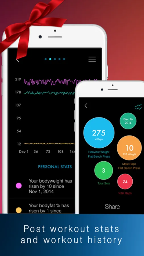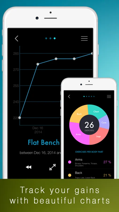 • Beautiful charts and post workout graphs and statistics to track your progress