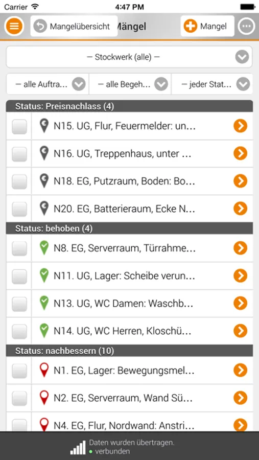 - Lebenszyklusverwaltung von Mängeln