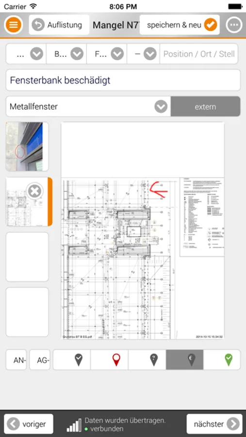 - Zuordnung von Mängeln auf Plänen