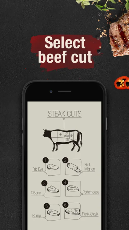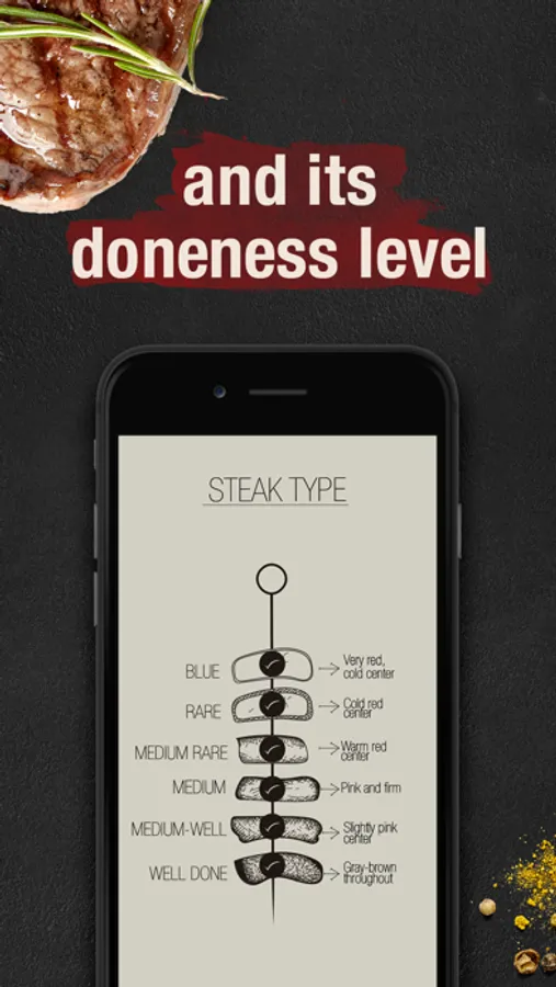 The app automatically recommends the perfect temperature, grilling and resting time. The app will notify you when it’s time to flip your steak and when it’s ready.
