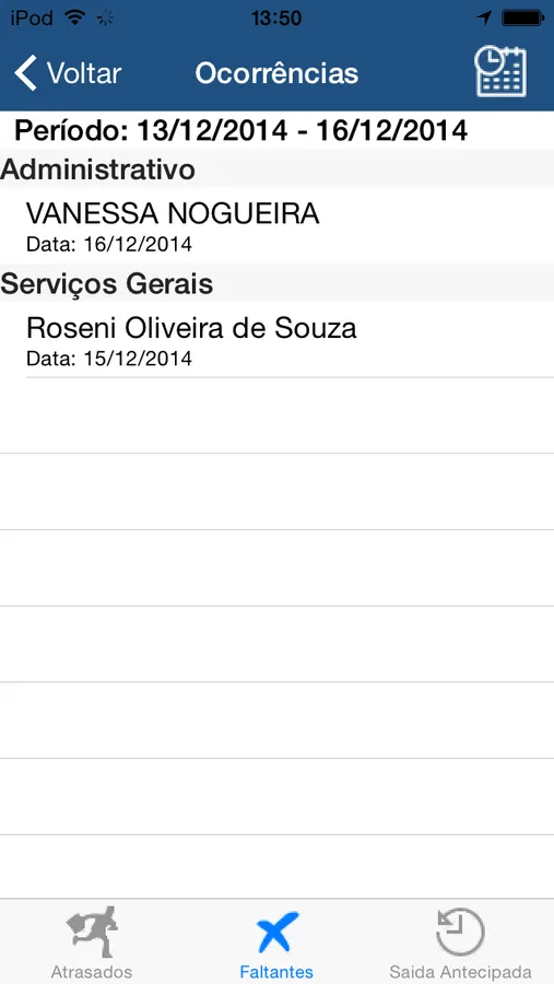 - Consultar colaboradores que tenham faltado no seu dia de trabalho.