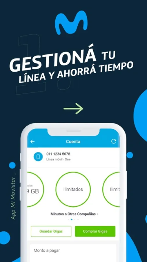App Mi Movistar es tu solución, estés donde estés vas a poder gestionar tus servicios, realizar consultas, pagar tus facturas, recargar saldo, comprar Packs de Gigas y mucho pero mucho más.
