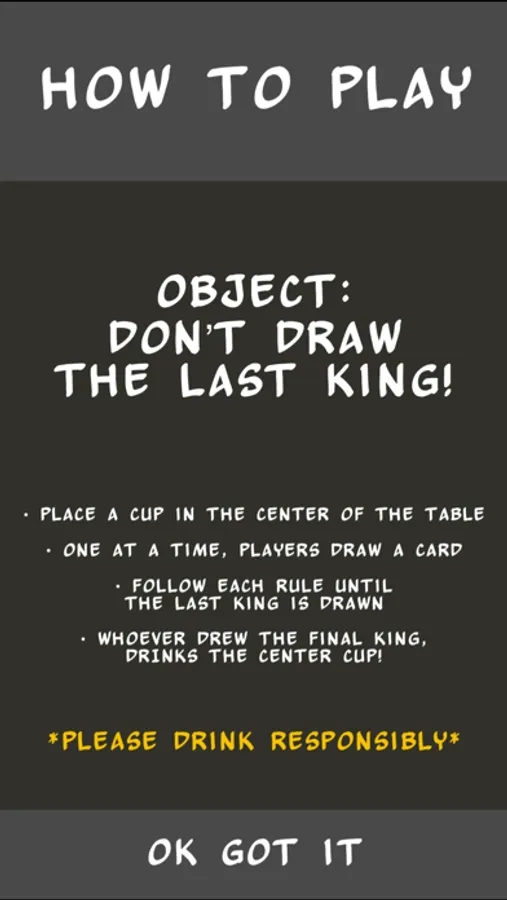 4.) Whoever drew the final King, drinks whatever is in the center cup.