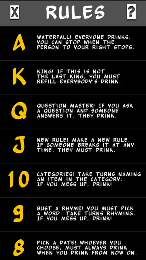This game is based on the widely known drinking game, Kings, (aka King's Cup).