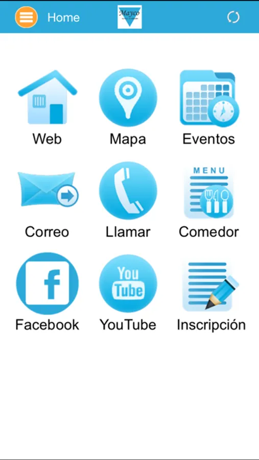 -. Accesos directos a: Página web, Menú de comedor, E-mails de contacto, Eventos, Mapa como llegar, Facebook, Llamar, etc…