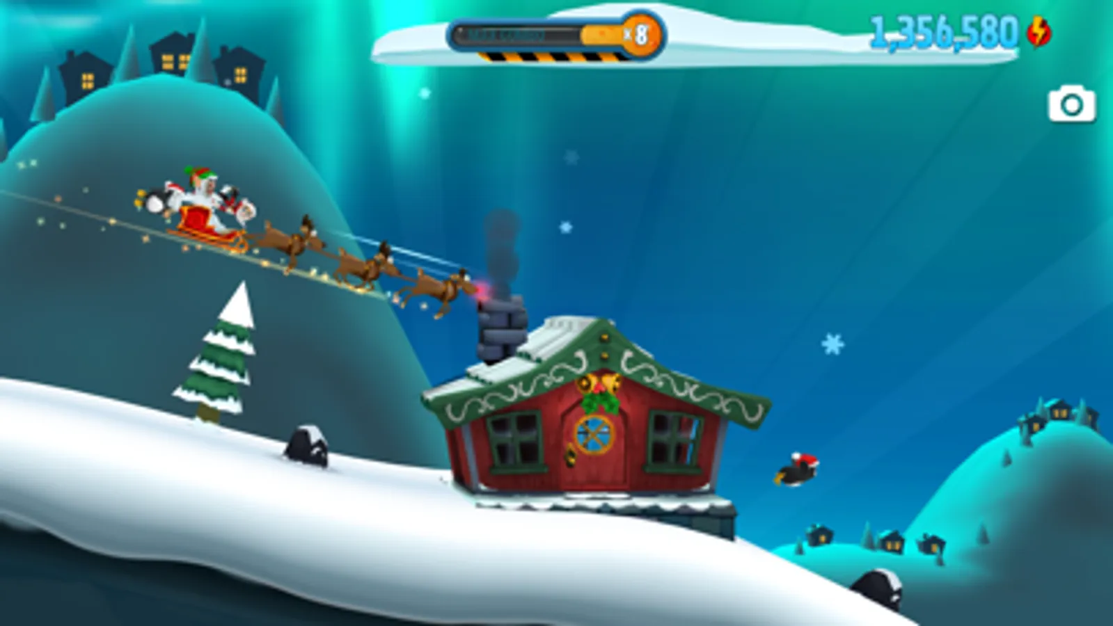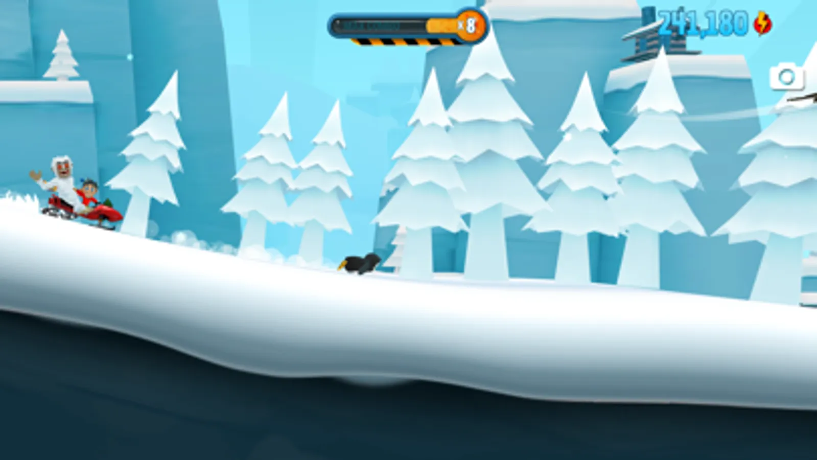 * Play head-to-head multiplayer with your friends and family! Who will be king of the mountain? Pick up powerups to hurl snowballs, flip your friends' screens upside-down, or pull a penguin out of your pocket for that quick escape!