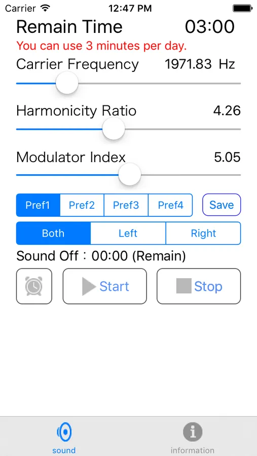 There is no limit on the playback time of tuning sound. It is recommended to use the paid version if you improve the tinnitus. In addition, you can save up to four tuned sounds in the paid version.