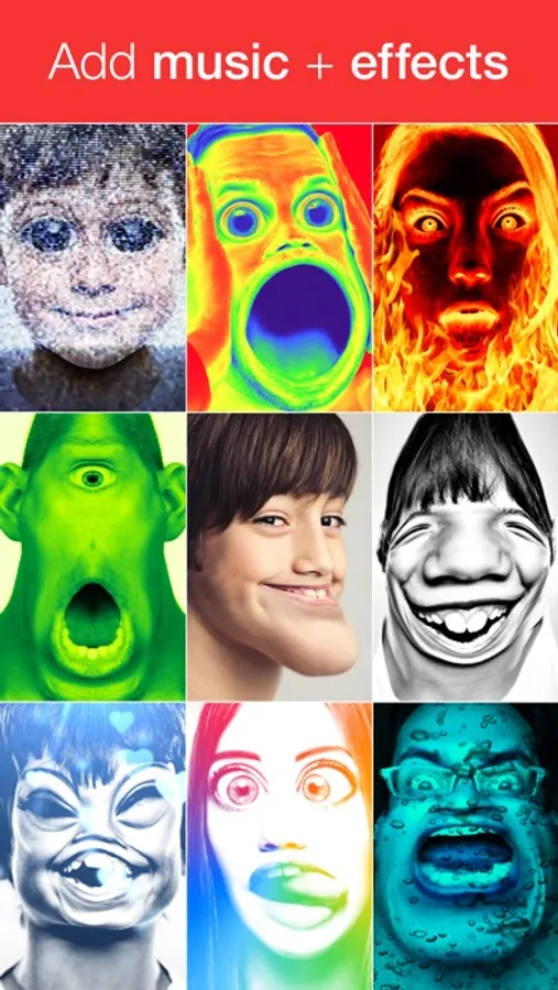 Instantly create hilarious movies and make everyone laugh. Give yourself a huge head or bulging eyes. Add lightning or underwater effects and change your voice to chipmunk or gorilla. Add music and create a hysterical movie to share with friends. Thousands of combinations. Get the app now and share the LOLs!