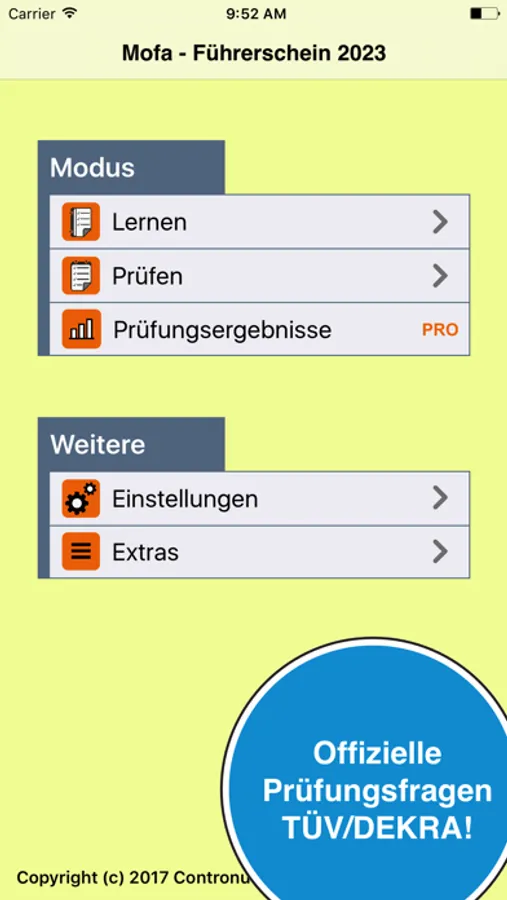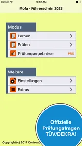 Mofa - Führerschein 2023 enthält alle offiziellen Prüfungsfragen und Abbildungen des amtlichen Fragenkatalogs TÜV / DEKRA. Die App ist eine Lernsoftware, die Dir dabei hilft, sich auf die theoretische Führerscheinprüfung vorzubereiten. Dabei kannst Du selbst das Lerntempo bestimmen und so Deine Erfolgschancen optimieren.
