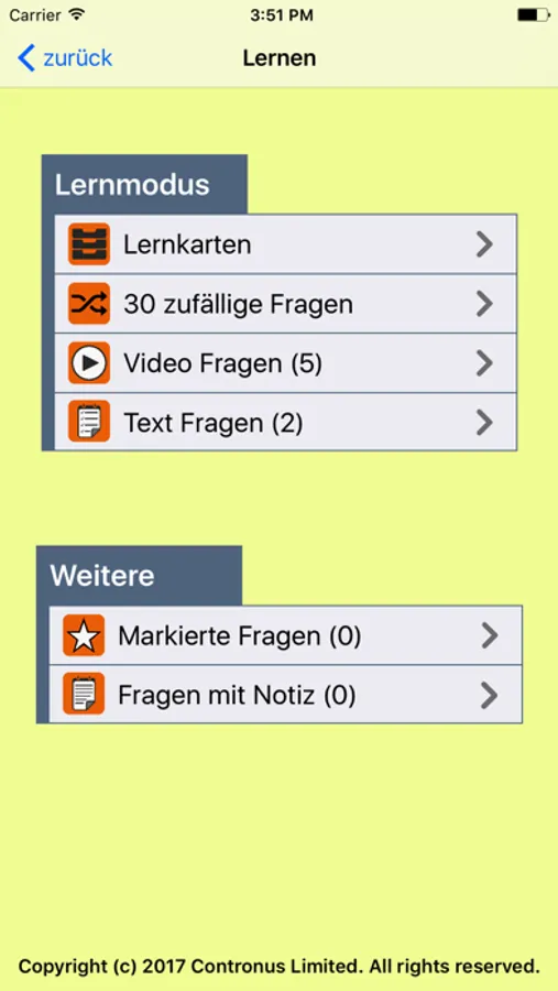 Erarbeite den offiziellen Katalog durch verschiedene Lern Modi: Lerne Fragen entweder nach Themengebiet sortiert, nach dem Leitner Lernkarten-Prinzip, nach Zufallsprinzip oder unter den realen Bedingungen einer Prüfung.