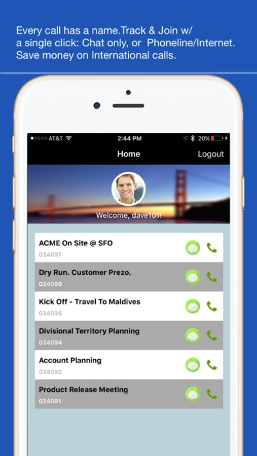 - Get users to dial-in or use VoIP. Domestic or International (VoIP only).