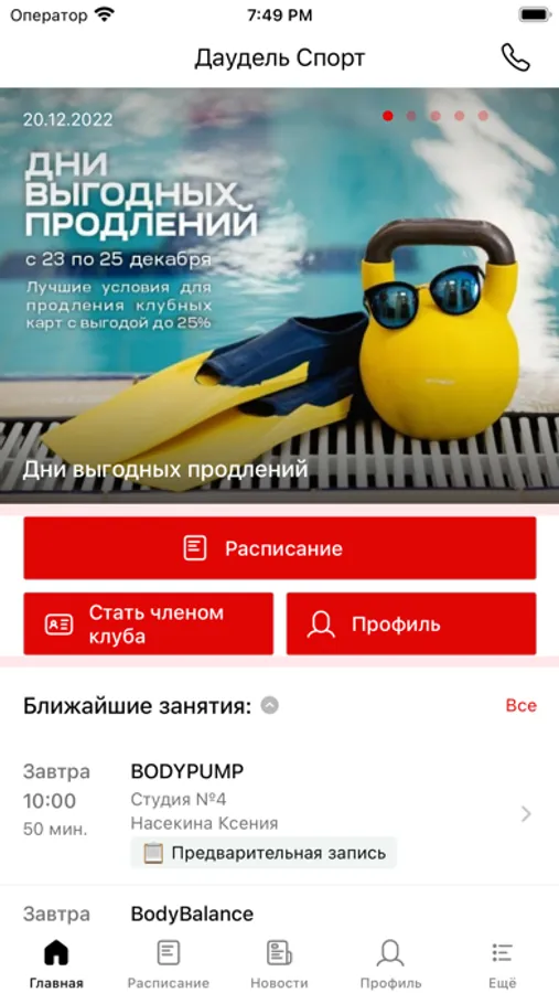 Приложение предназначено для клиентов клуба Даудель Спорт.