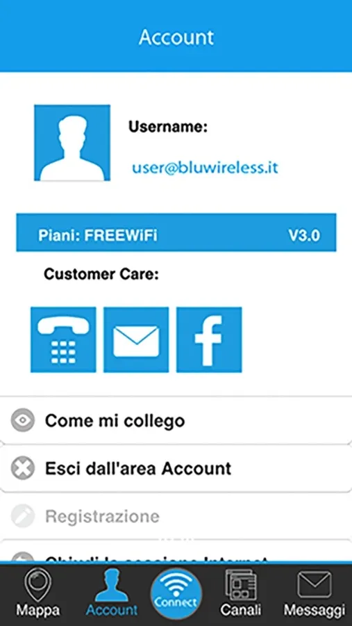 ottenere il tuo account FREE WiFi e cosi potrai navigare in tutta la Rete WiFi di Bluwireless.