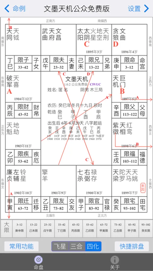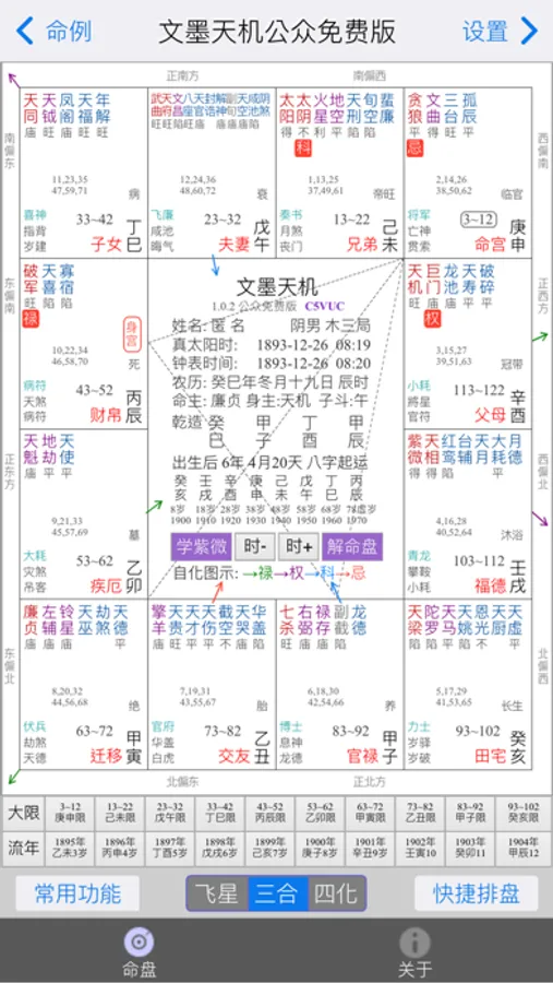 5. 提供方便快捷的大限、小限、流年、流月、流日和流时切换功能,大幅简化交互复杂度。