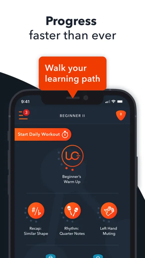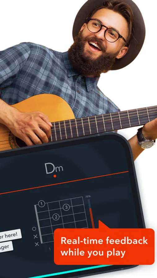 Uberchord takes guitar learning to the next level. Chords, Rhythm, Songs - all with a real instrument in your hand. Uberchord listens and adapts to you while teaching you how to play.