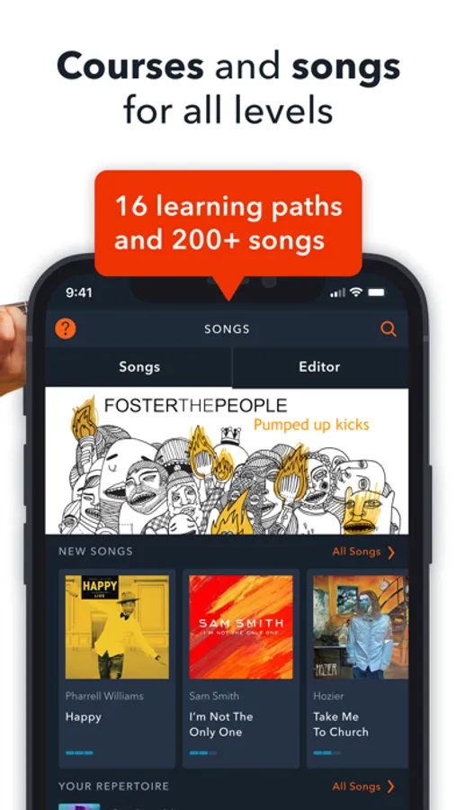 • Learn to play popular songs step-by-step