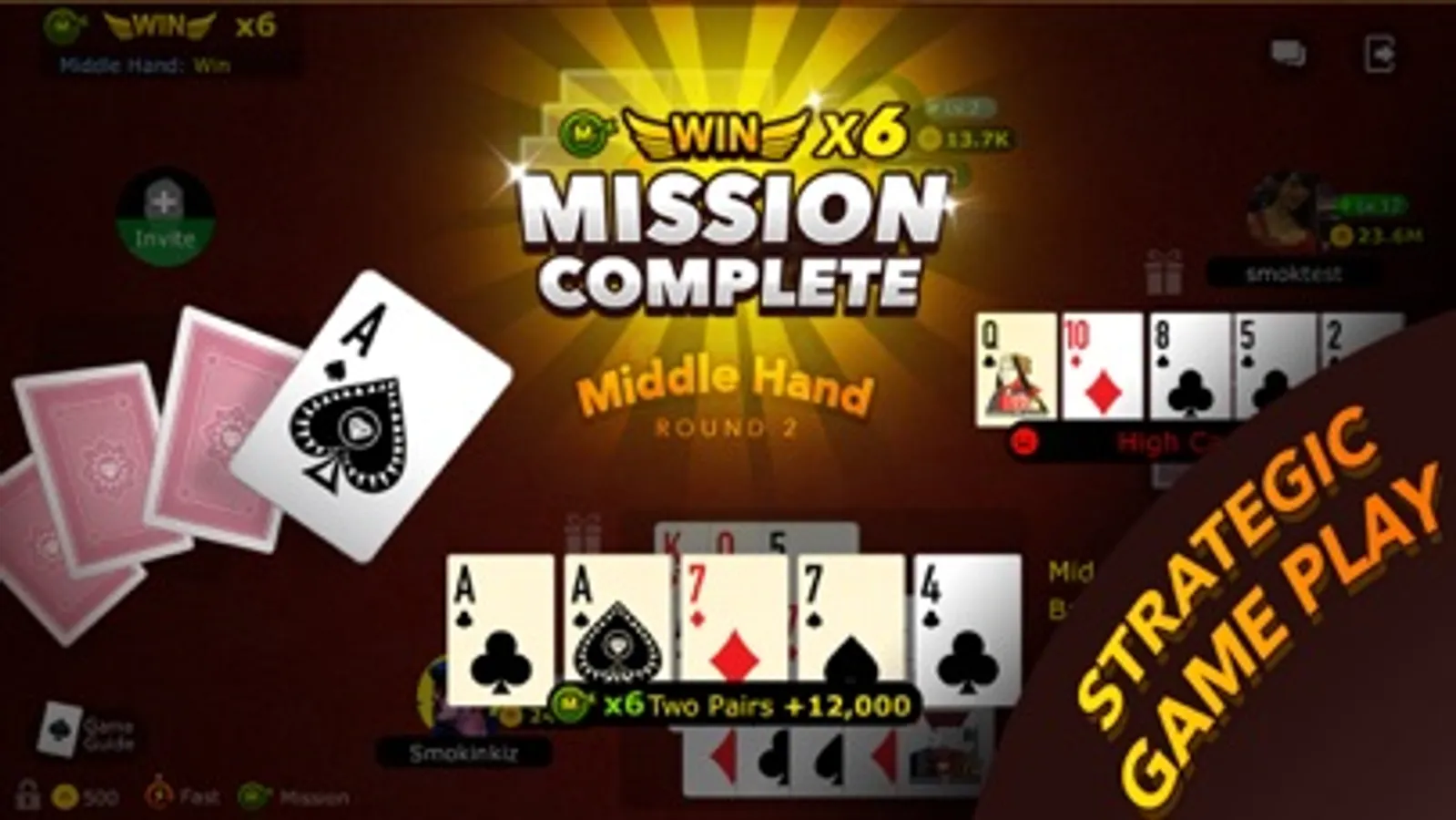 Diamond Capsa Susun can be played with 2 to 4 people with 1 Deck (52 Cards). Each player get 13 cards and must arrange them into 3 Hand (Front, Middle and Back).