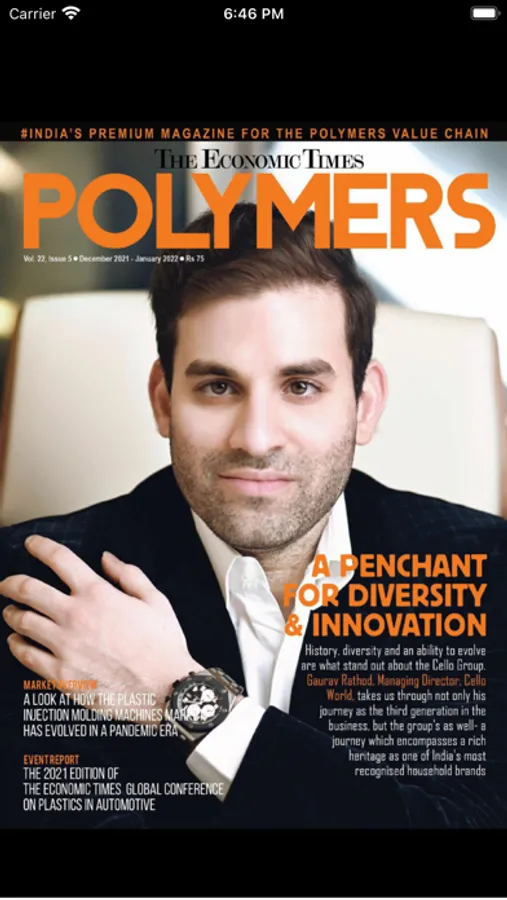 The ET Polymers is a premium, bi-monthly publication targeted at the Polymers industry in India. Uniquely positioned to address the entire value chain, ET Polymers will reach out primarily to the downstream sectors (conversion into plastic articles) as well as to the upstream sectors (manufacturing of Polymers). Despite the industry’s high growth spanning over a period twenty years and crossing many milestones, Indian plastics industry is yet to realise its full potential. ET Polymers will play a catalyst’s role in the industry’s efforts to make it happen. Through content driven by insights and intelligence, the magazine will facilitate decision making in the industry. The objective of the magazine is to create a knowledge based platform for exchange of information and ideas. It will recognize the contribution of the industry players and provide them a forum to showcase their accomplishments. The magazine will also highlight the industry’s trends, challenges as well as opportunities by working directly with the industry players, industry bodies and research organisations. ET Polymers will also associate itself with all important industry events and exhibitions.