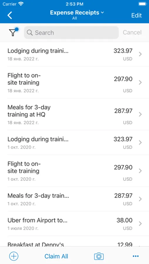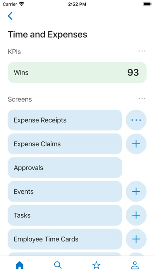 • Expense receipts and claims: submit new expenses using the camera on your device to photograph receipts. View submitted expense claims to see if they have been approved.