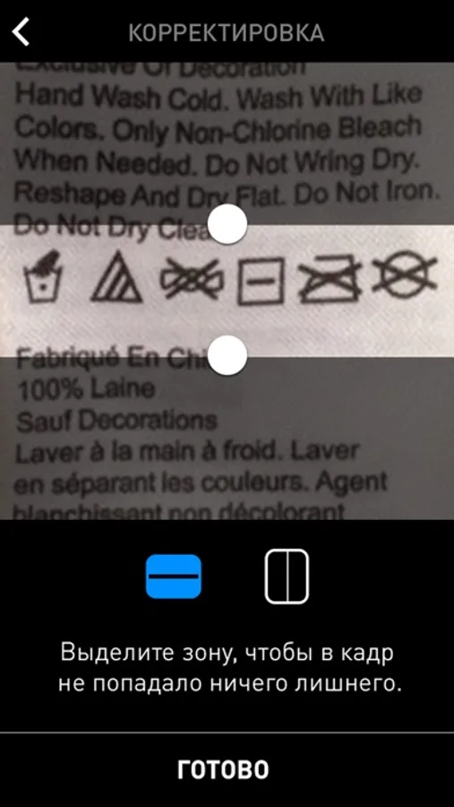 – При помощи камеры смартфона отсканируйте бирку одежды