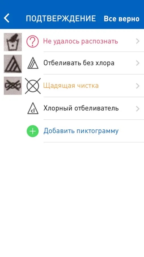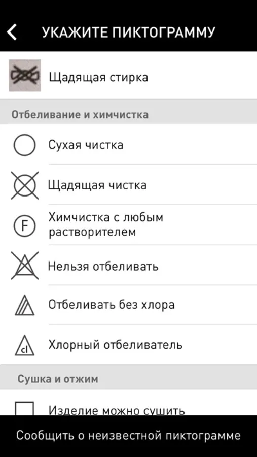 – Затем приложение покажет расшифровку всех знаков и благоприятный режим для стирки Вашей одежды в стиральных машинах Indesit или Hotpoint- Ariston.