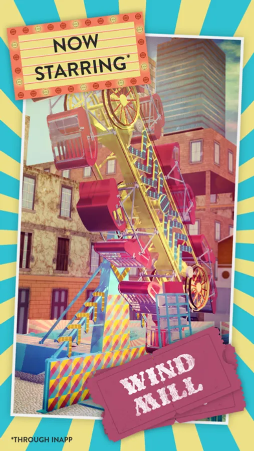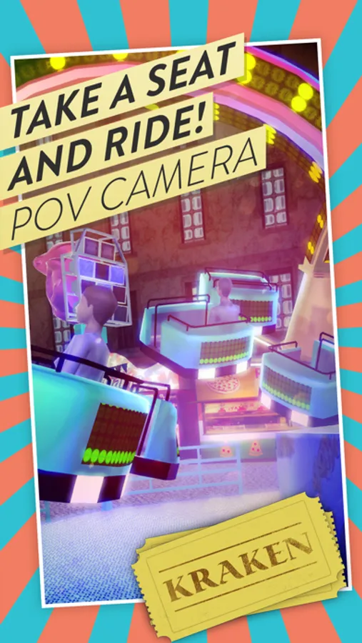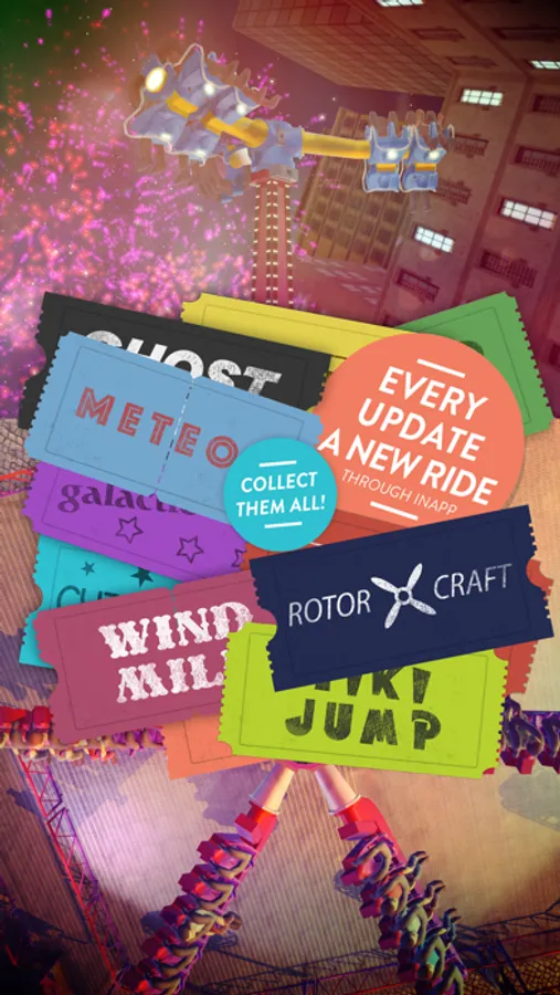 The app includes two unique rides ("Kraken" and "Cyber Star"). Further rides available: "Gold Mine", "Galactic Race", "Vodoo Swing", "Flying Zeppelin", "Ghost Spin", "Windmill", "Rotorcraft" and "Tiki Jump" and many more. In addition, we provide new rides in every update (by InApp).