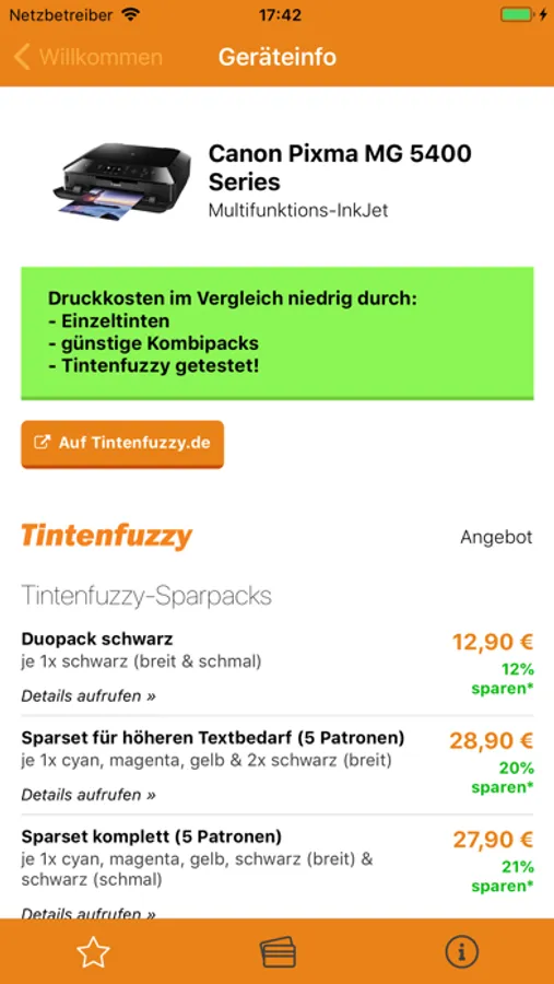 Die offizielle Tintenfuzzy-App bietet Ihnen hilfreiche Funktionen rund um Ihren Drucker und Gerätekauf.